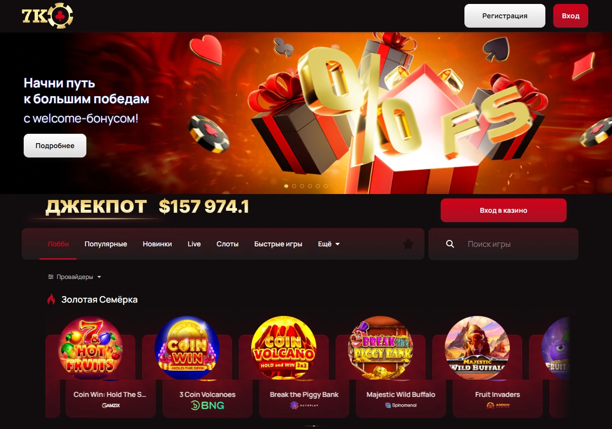 • Типы игр: слоты, настольные игры, живой казино